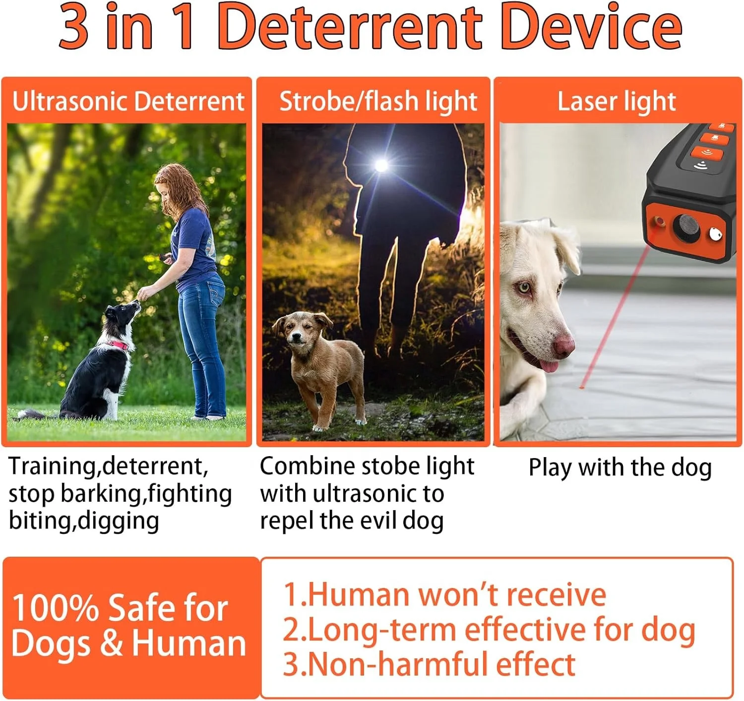 NEW Rechargeable 3 Mode Dog Bark Deterrent Outdoor Sonic+Laser Repellent Anti Barking Control Ultrasonic Dog Training Device