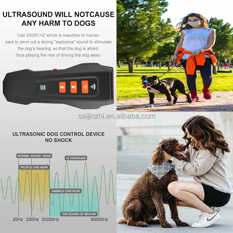 Model Number SJZ-048 Material High quality New ABSUltrasonic Dog Repeller anti bark deivce Training Mode Flashlight + laser+ Ultrasonic Dog training advice Battery Rechargeable 1200MAH Battery Color Black+Customized Color Suitable for Dogs Cats Animals Power Supply Rechageable Coverage 50feet Factory Service OEM . ODM .Amazon FBA.