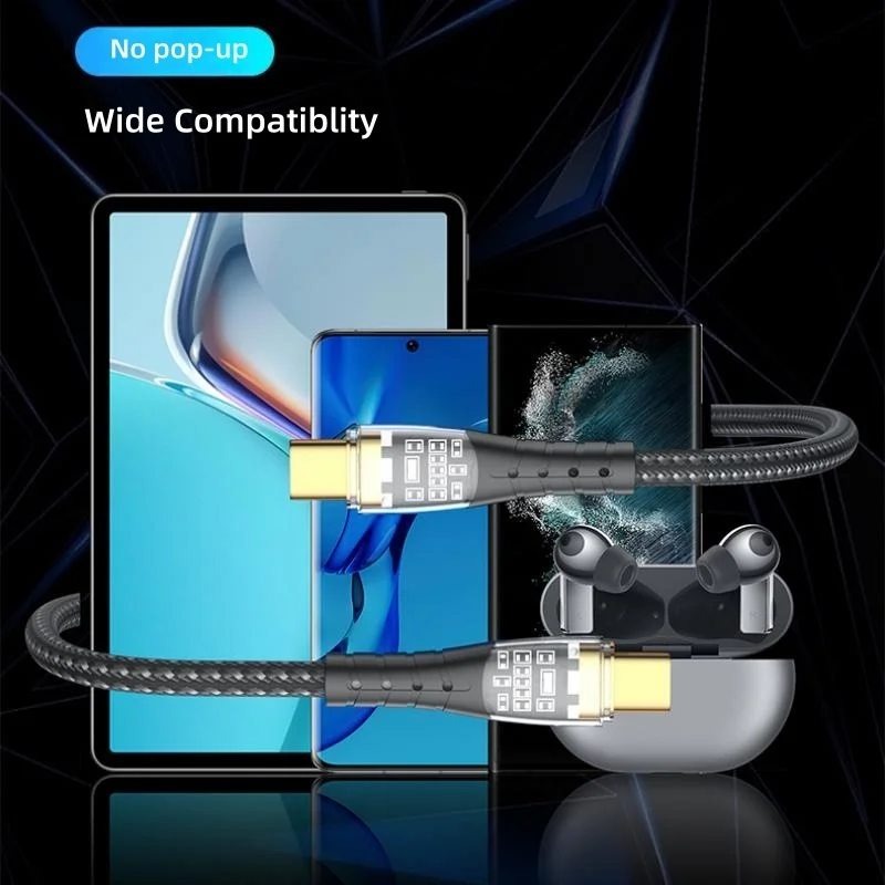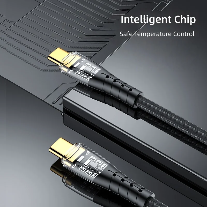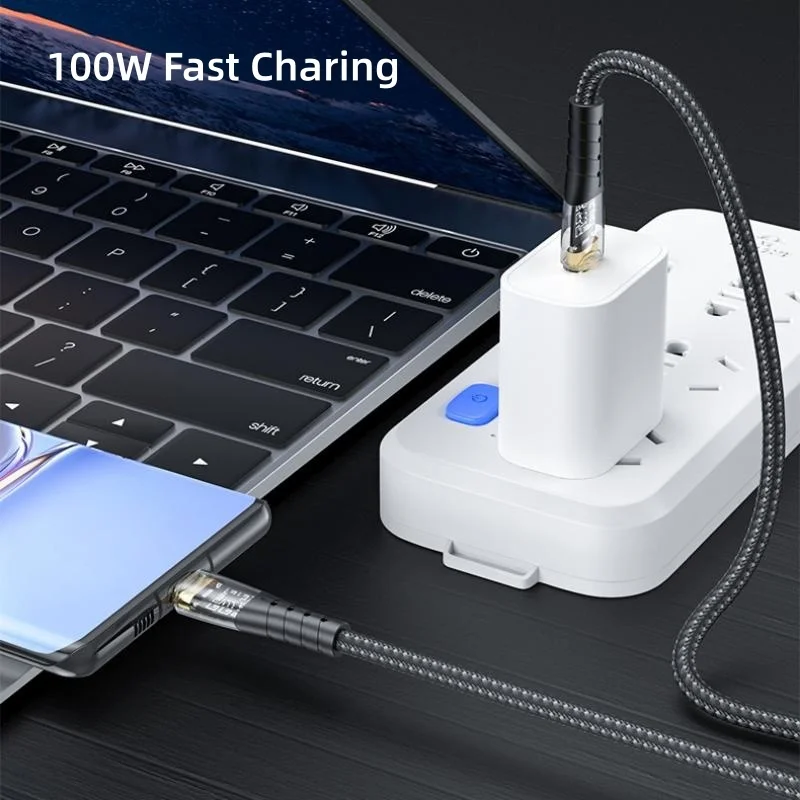 New Transparent Nylon Type-C Luminous PD100W Fast Data Cable Mobile Phones Fast 5A Flash Charging for Iphone17 16
