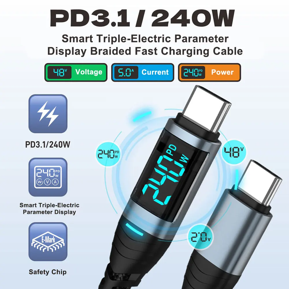 New Trending USB C Fast Charging Mobile LED Screen PD Cable With Digital Display Data Cables for Mobile Tablet Android Laptop