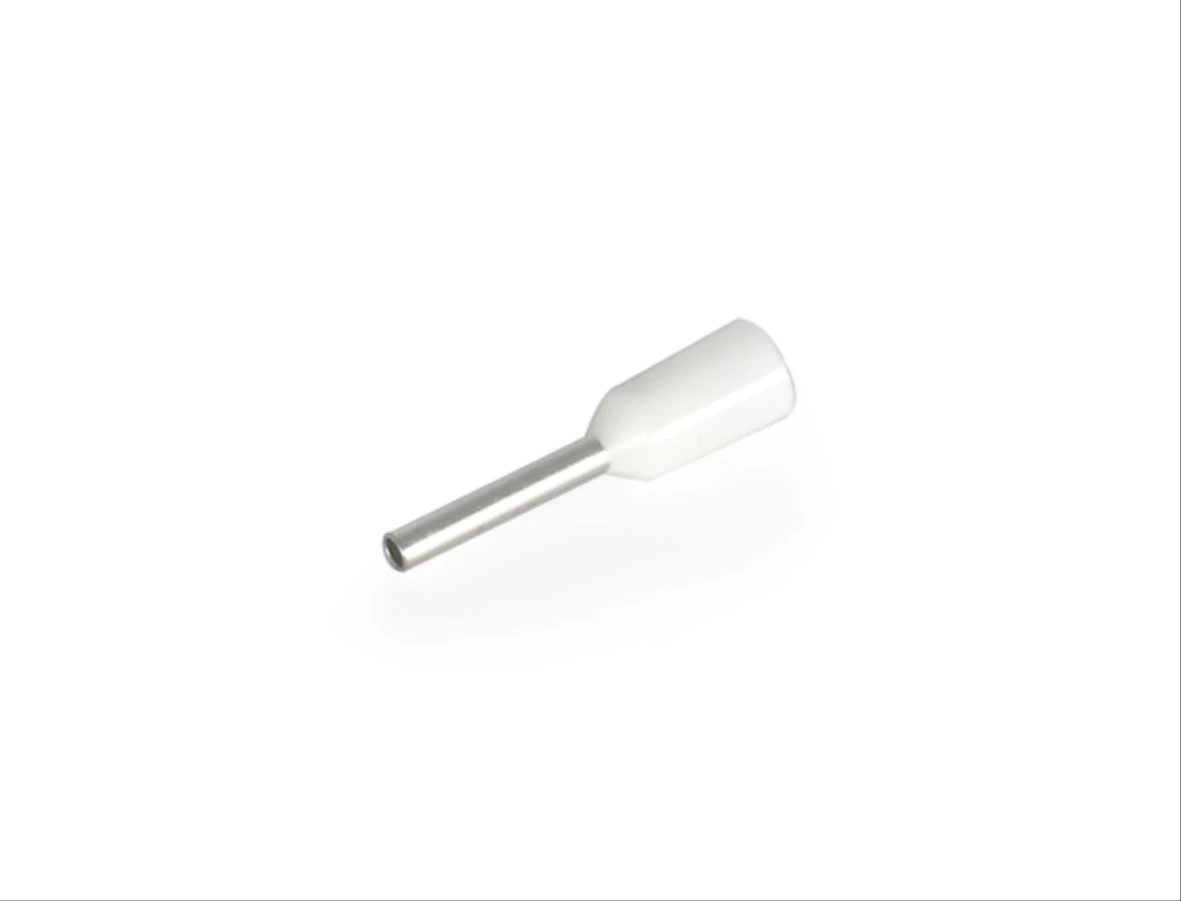 0.3mm²-0.5mm² Polypropylene insulated end sleeve 8mm pin length white · · · Polypropylene insulation · · Annealed to guarantee optimum ductility · · Electrolytically tin-plated to avoid oxidisation · · Halogen free · · -20°C to +115°C Temperature Range · · For Flexible Copper Conductor