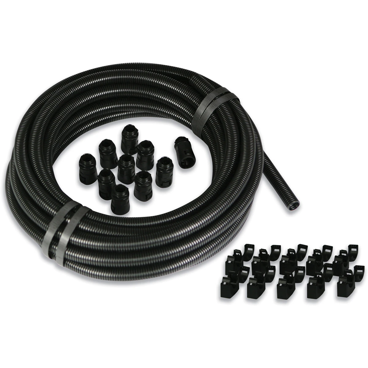 Kit includes: 10m flexible nylon conduit, 10 straight one piece quick fit fitting and locknuts, Quick removal tool for fittings, 10 conduit clips. · · · IP66, 67, 68 & 69k performance · · Self extinguishing, halogen free conduit and fittings · · Oil & UV resistant · · Approval marks · · Kit includes: 10M flexible nylon conduit, 10 straight one piece quick fit fitting and locknuts, quick removal tool for fittings, 10 conduit clips
