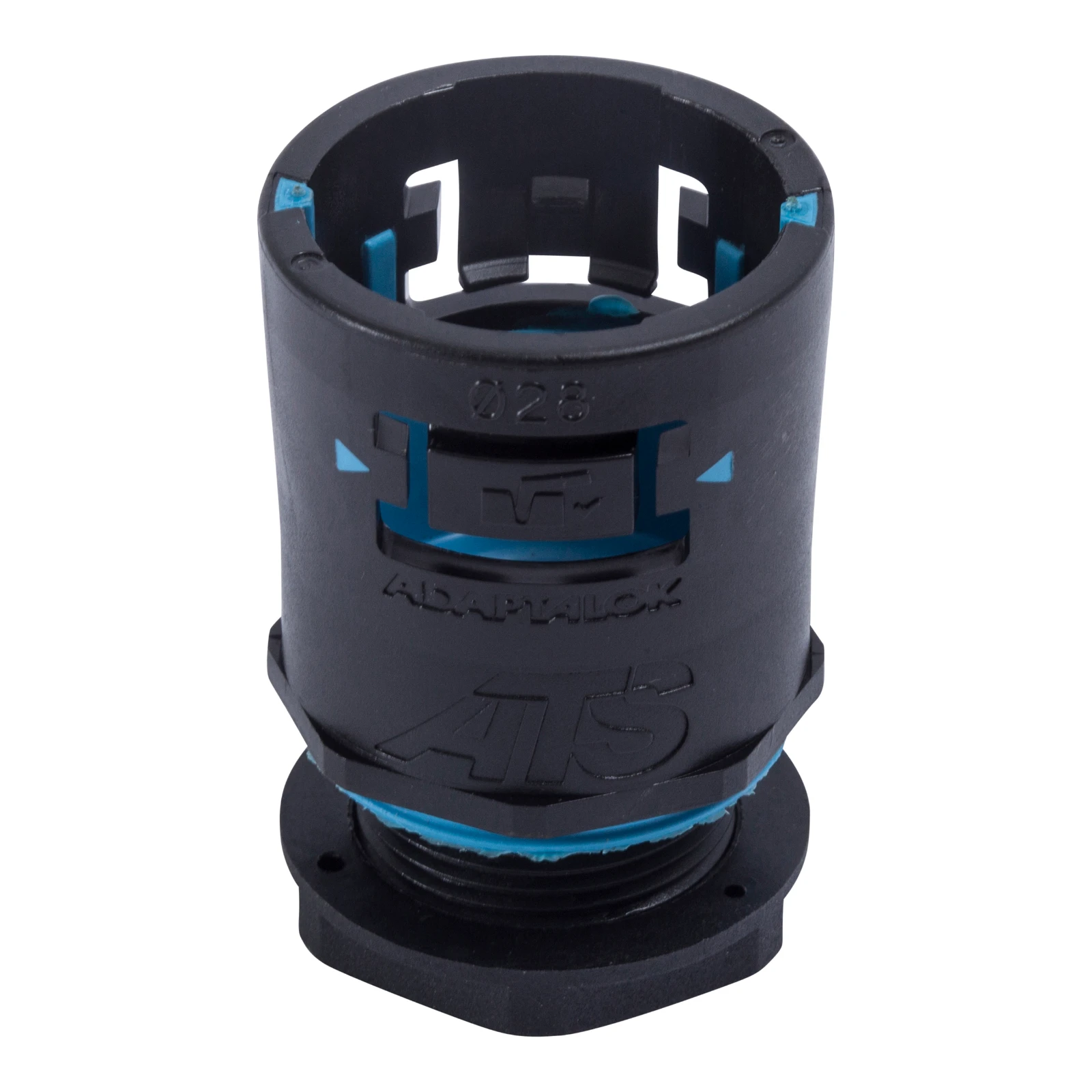 Straight flexible conduit fitting made up of a black nylon construction complete with locknuts providing additional strength for a stable connection. · · · One piece quick-fit fitting · · Integral face seal washer · · Self extinguishing · · IP66, 67, 68 and 69k performance · · Halogen free