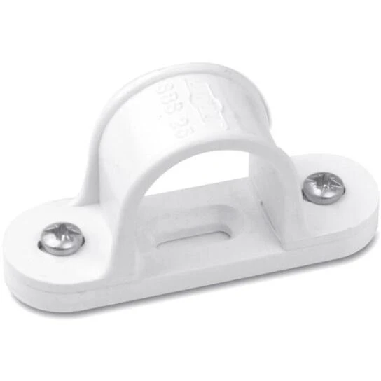 Closed model spacer bar saddle made up of a white polyvinyl chloride (PVC) housing body, designed for use as an accessory for electrical conduits. Suitable for use in industrial and commercial environments. · · · Simple and fast installation · · Durable and impact resistant · · Type of fastening: Screw hole · · Closed: False