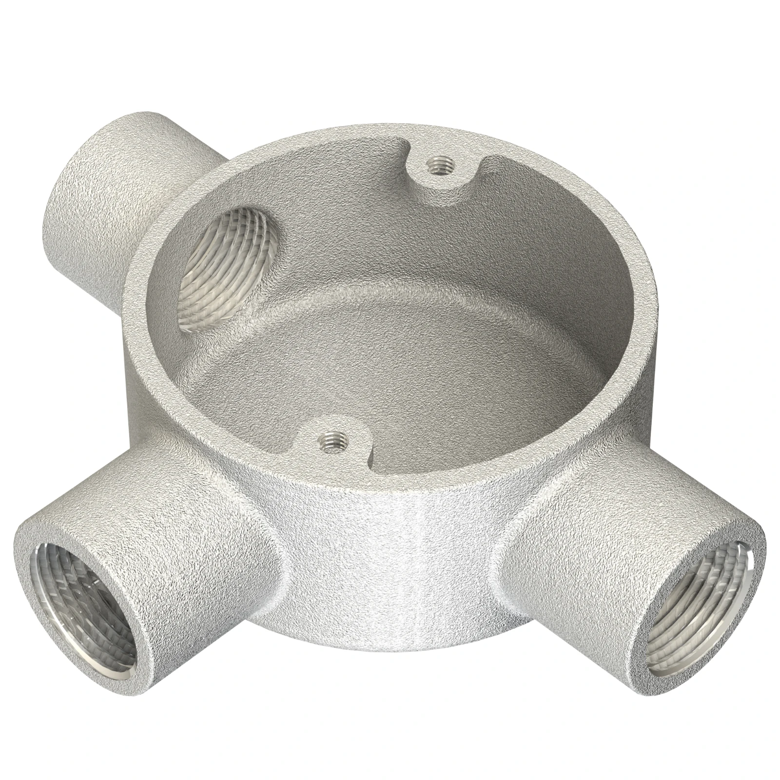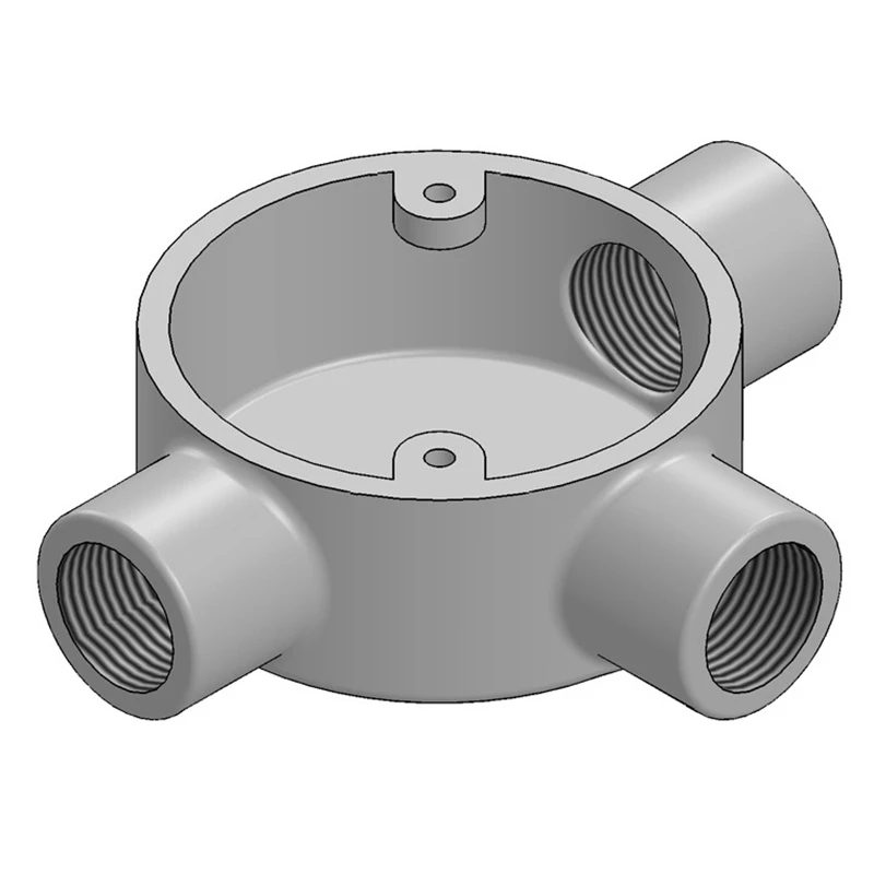 25mm TEE BOX – GALV · · · Compliant to London Underground (LU) Standard 1-085 (for use on surface and sub-surface locations) · · Designed to accept 25mm steel conduit tube · · Designed to accept 25mm steel conduit tube · · Used to house and protect electrical cables · · Black Enamel finish also available · · BIM Revit file readily available