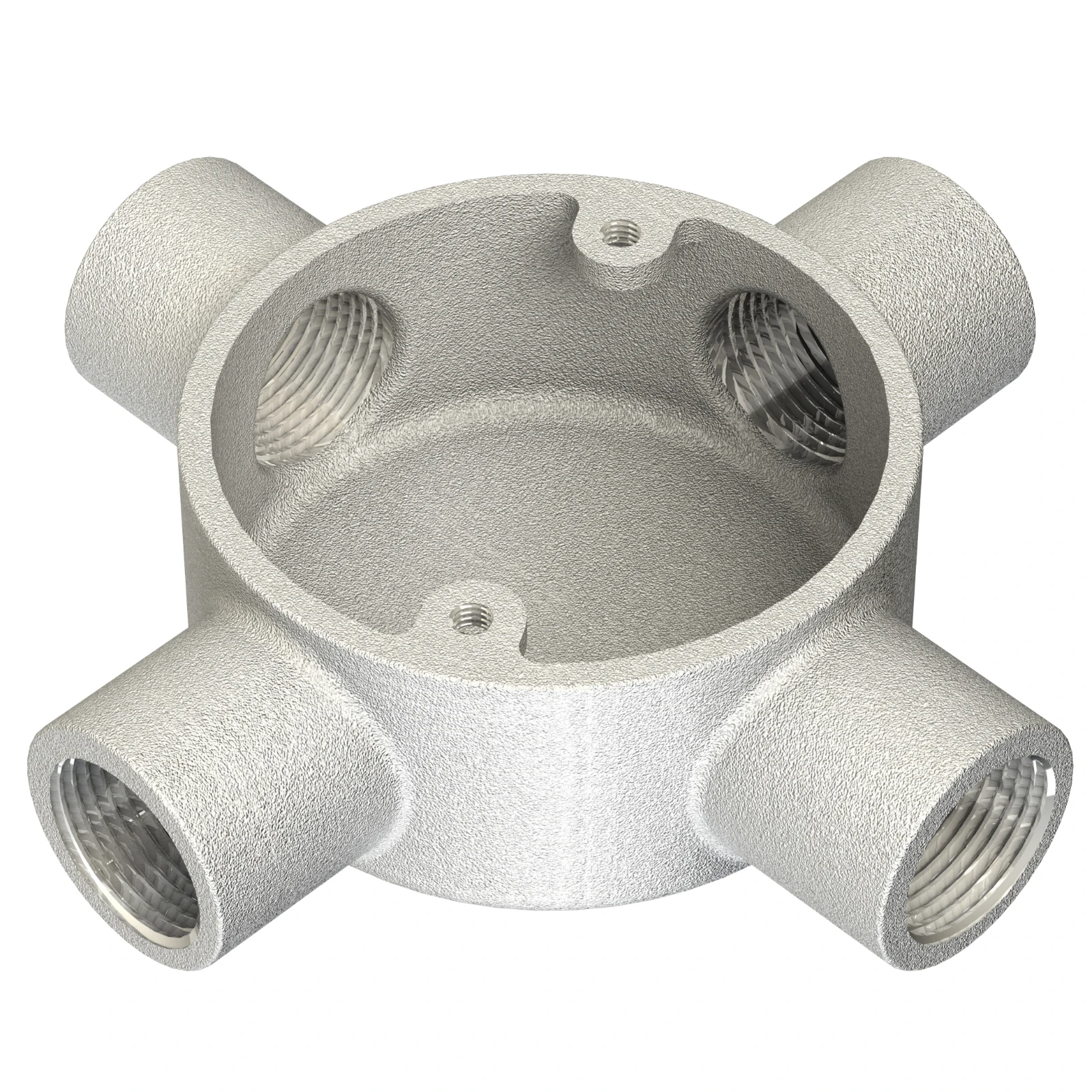 Newlec 25mm Steel Conduit X/Intersection Box 4 Way Malleable Galvanised Steel