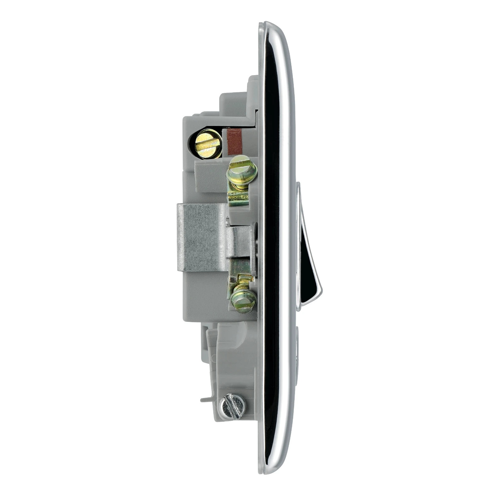 Newlec Connection Unit Switched Decorative Raised Edge 13A Polished Chrome with LED+Flex-Outlet