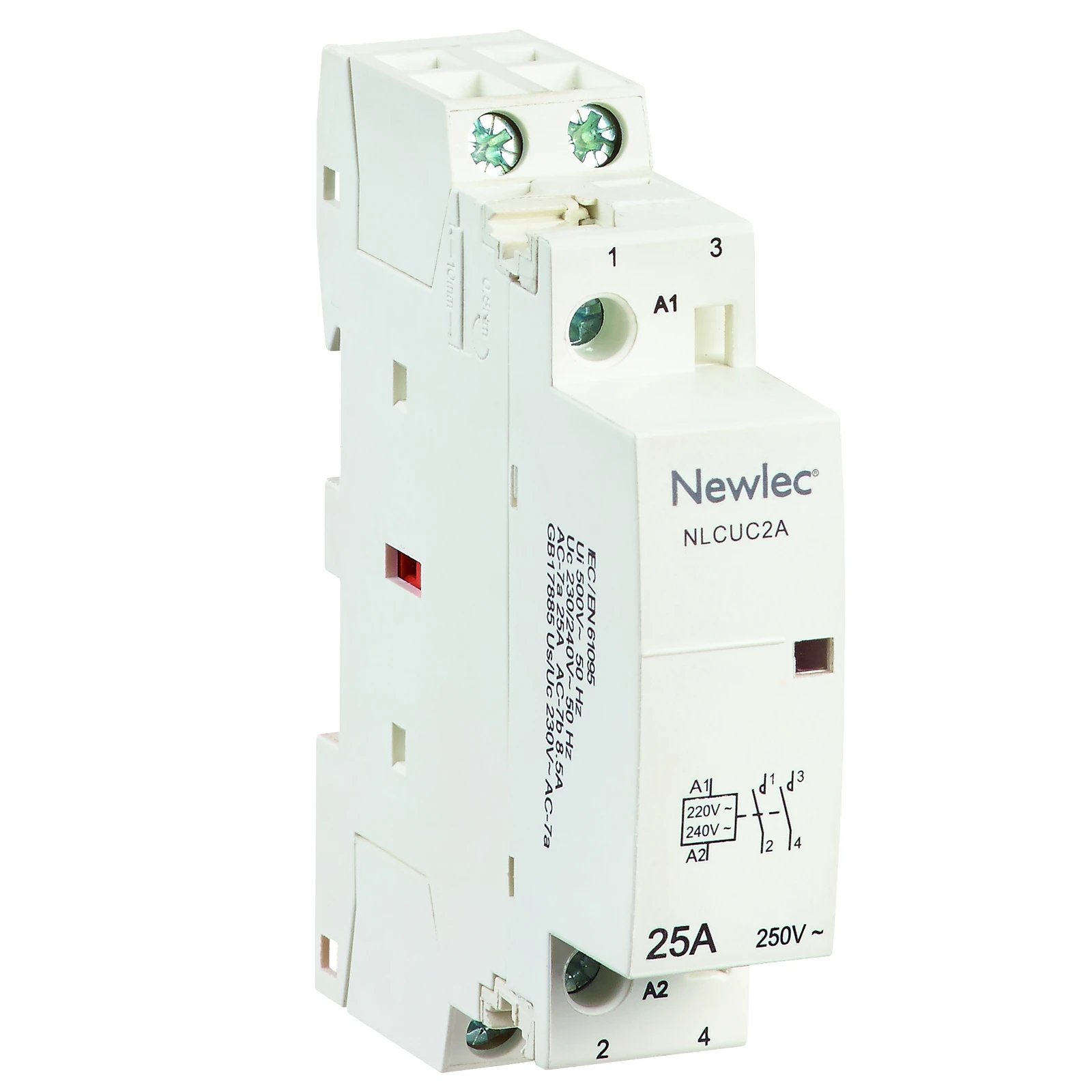Newlec Contactor Double Pole DIN Rail Mounting Single Module 25A 230V