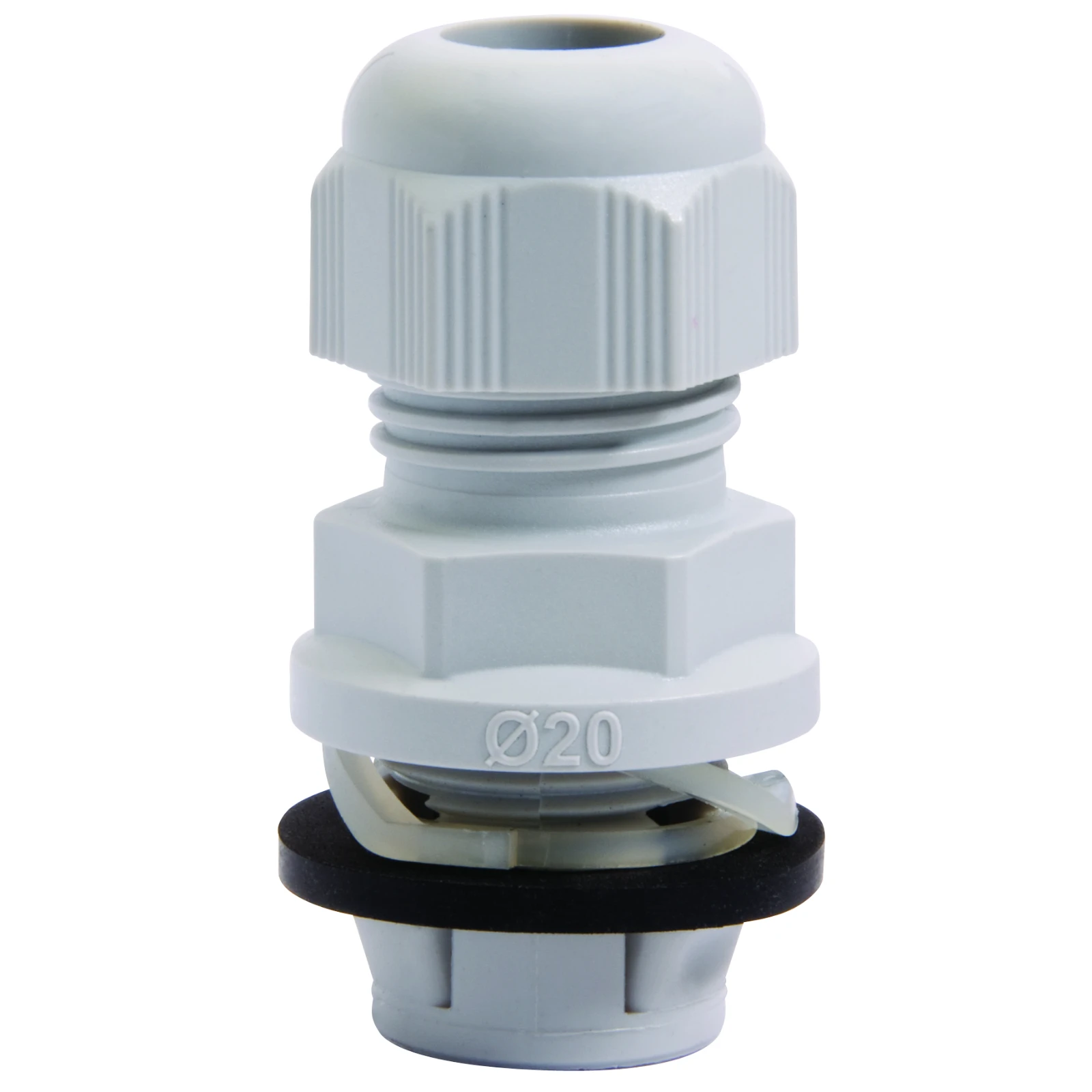 Technical Specifications  Technical Specifications Cable gland Material Plastic Degree of protection (IP rating) IP68 Thread type Metric Type of sealing Sealing ring Model Straight Colour White Material qualifier Polyamide (PA) Nominal thread size metric/PG 20 Suitable for cable outer diameter 7 – 7 mm Locknut included No · Technical Data Sheet – Click to Download