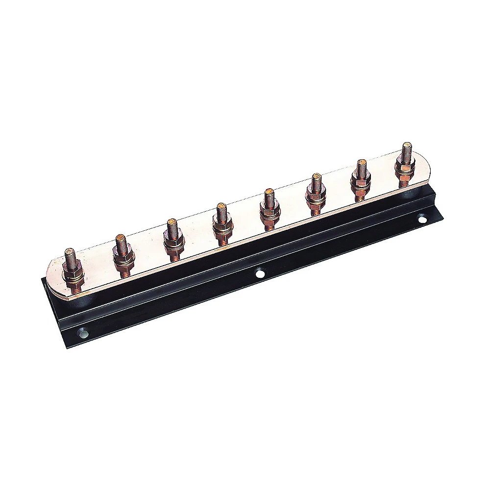 These are Newlec 8 way earth bars and disconnecting links. · · · High quality 50mm x 6mm hard drawn copper bar · · Lightweight high impact PVC insulating base entirely corrosion proof · · Available with single or twin disconnecting links · · M10 phosphor bronze nuts, washers and set screws · · 8 Way