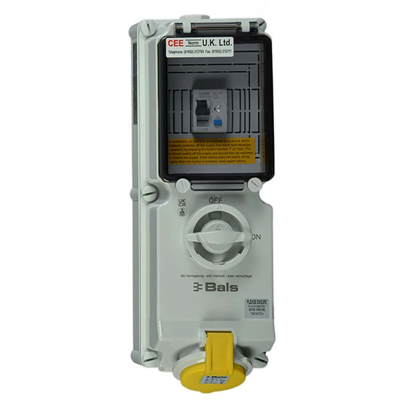 Plug interlocking mechanism. Top and bottom cable entry. IP44. RCD 30mA. · · · Colour: Yellow · · Current Rating: 16A · · Number of Pins: 3 Pin · · Number of Poles: 2 P+E