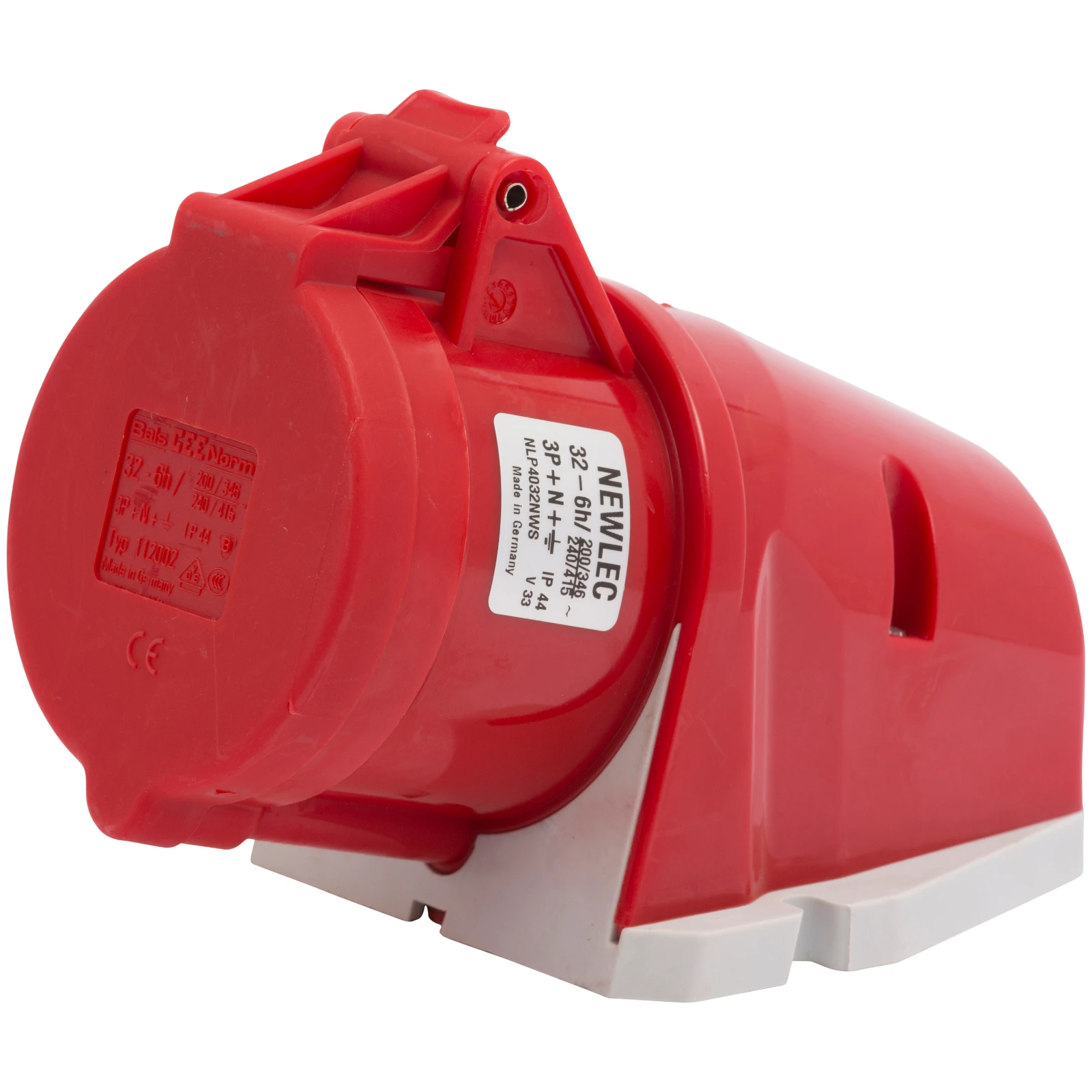 Newlec Industrial Power Socket Surface Wall 3P+N+E 32A 415V IP44 Red