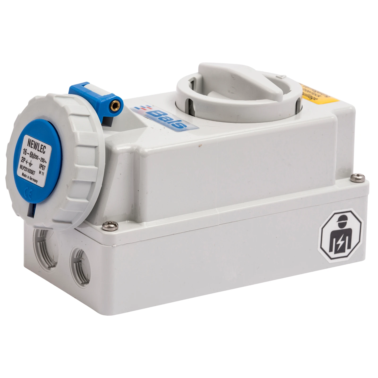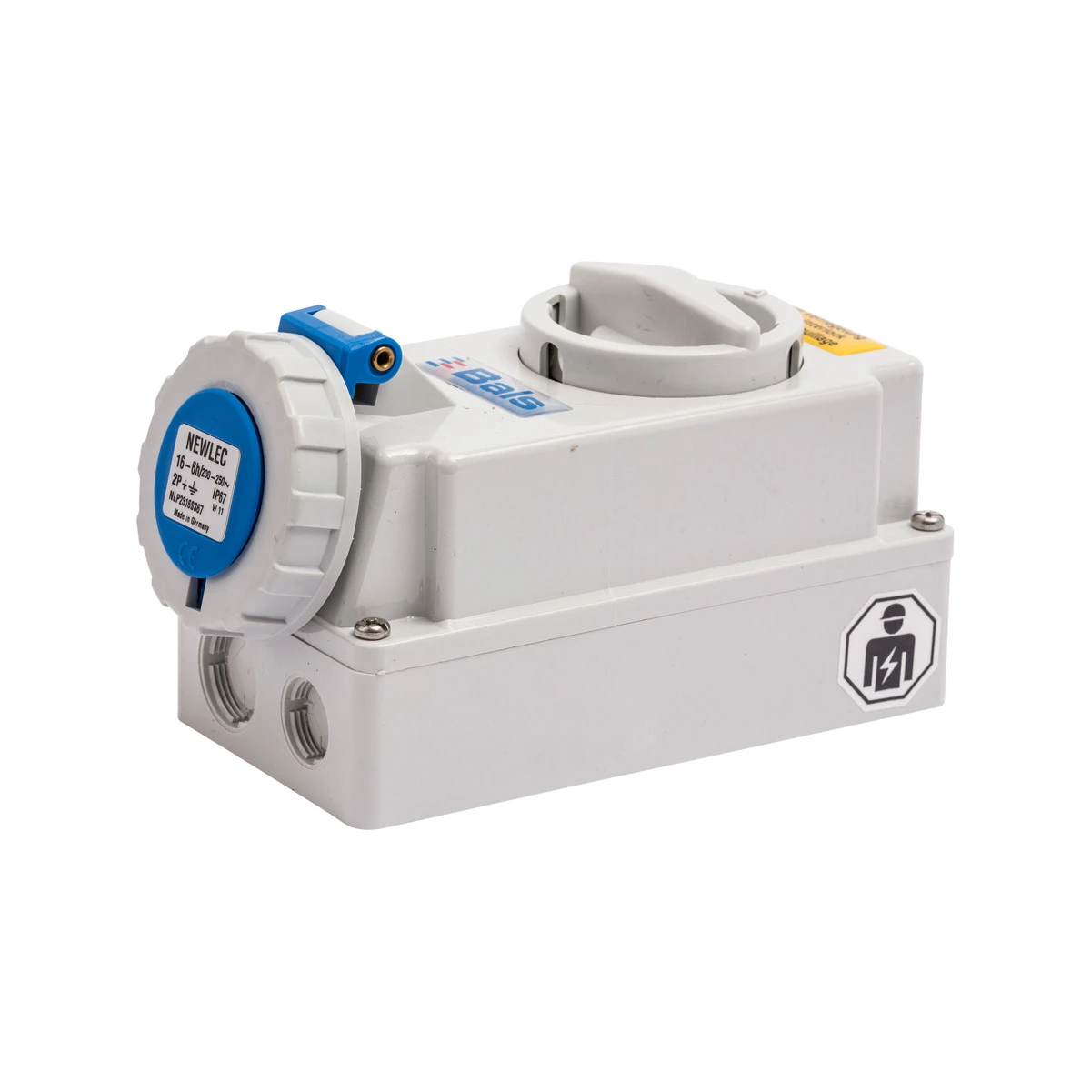 Newlec Industrial Power Socket Switch Interlocked Surface 2P+E 16A 230V IP67 Blue