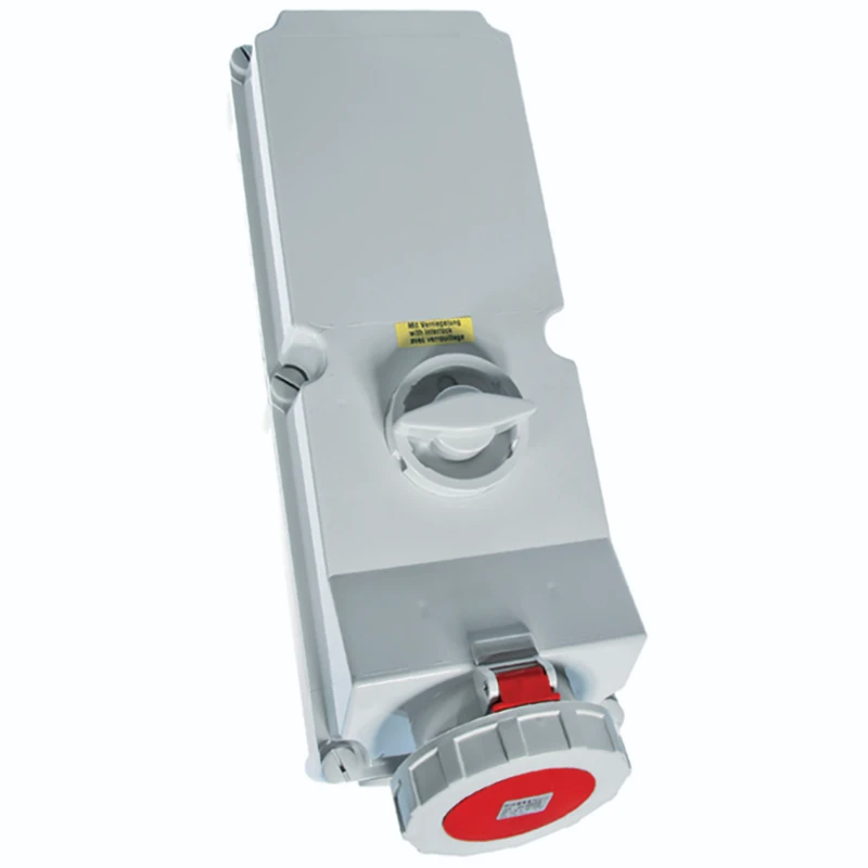 Newlec Industrial Power Socket Switch Interlocked Surface 3P+N+E 125A 415V IP67 Red