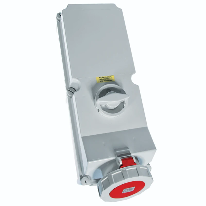 Newlec Industrial Power Socket Switch Interlocked Surface 3P+N+E 63A 415V IP67 Red