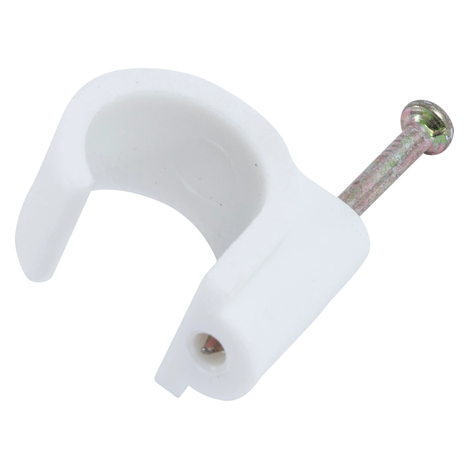 Technical Specifications  Technical Specifications Nail-in cable clip Material Plastic Shape Round Colour White Surface protection Untreated Suitable for diameter 15 – 15 mm Hardened steel nail Yes · Technical Data Sheet – Click to Download