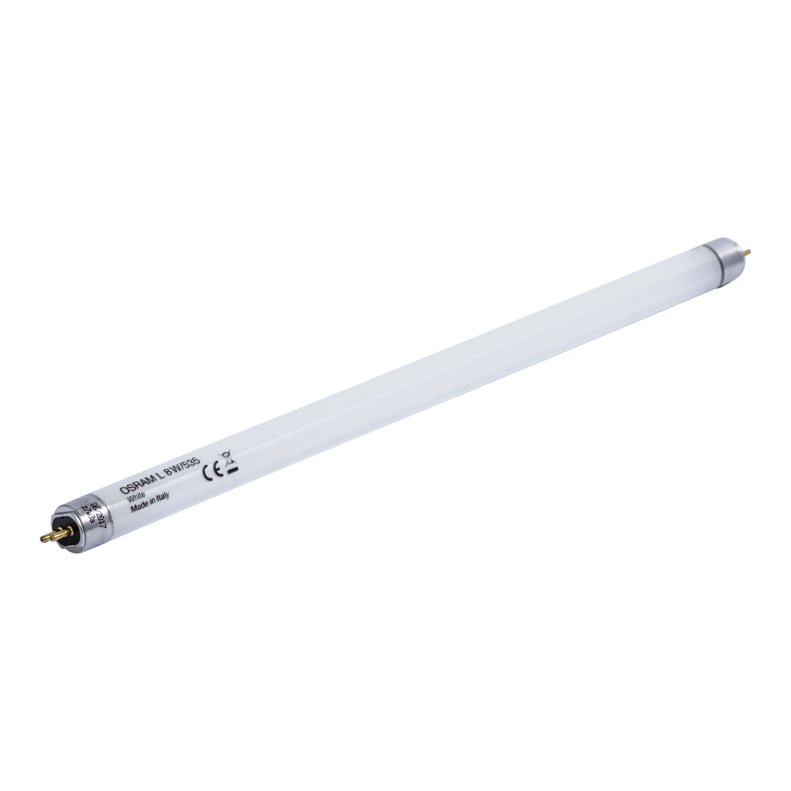 Technical Specifications Technical Specifications Fluorescent lamp – tube Colour of light acc. EN 12464-1 Neutral 3300-5300 K Colour rendering index (CRI/Ra) 80-89 Cap G5 Colour White Lamp designation T5 Lamp shape Rod Length 300 mm Lamp power 8 W Tube diameter 16 mm Average nominal lifespan 12000 h Luminous flux 385 lm Colour temperature 3500 K · Technical Data Sheet – Click to Download