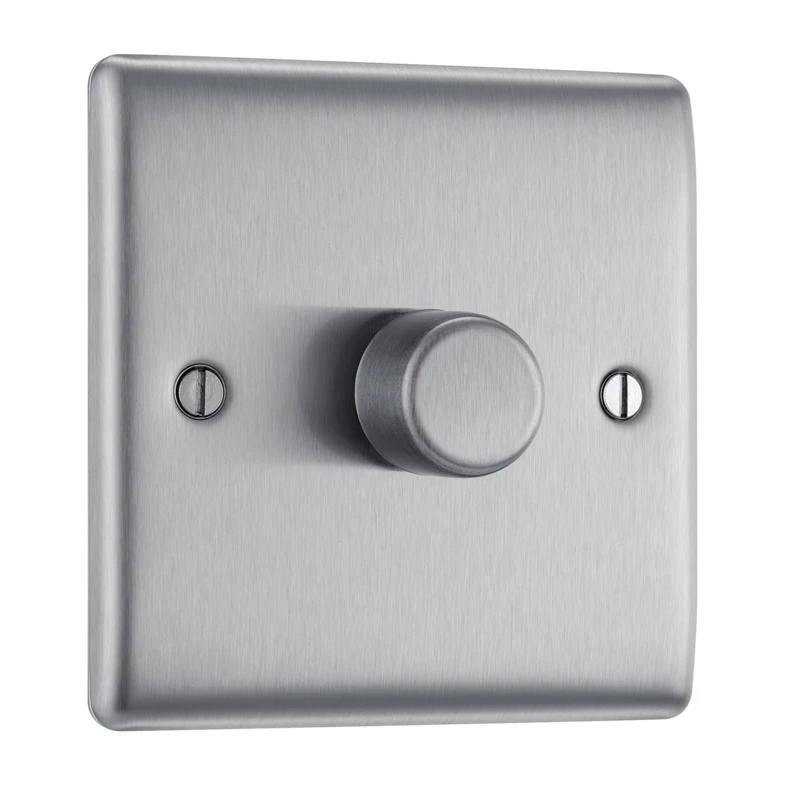 Nexus Metal Brushed Steel 1 Gang 2 Way Push Type Trailing Edge 200W Push Type Dimmer Switch