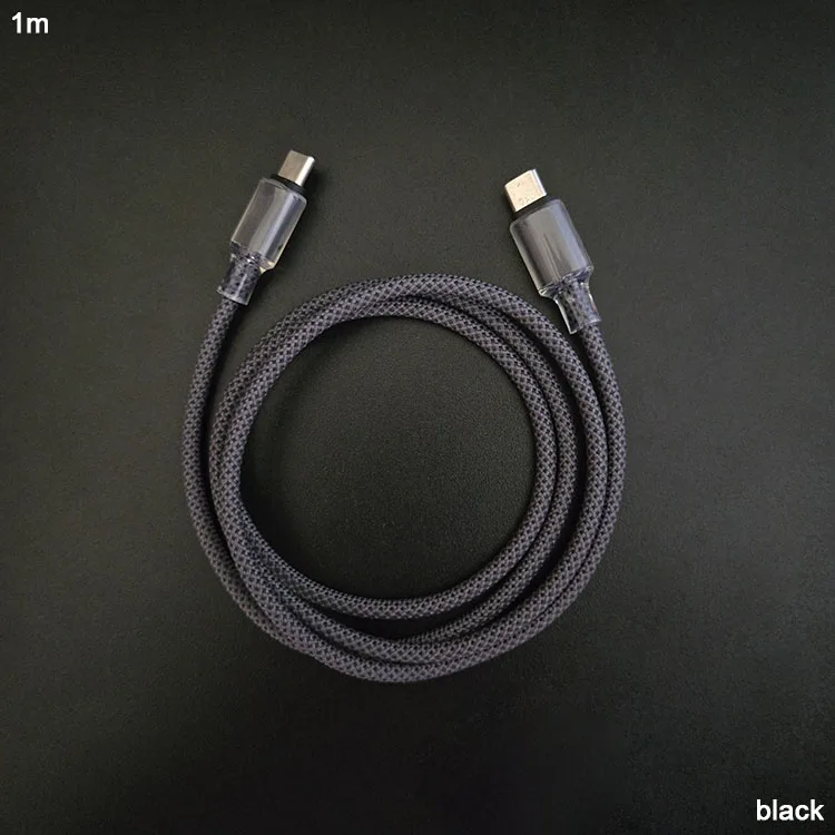 Nice Quality Transparent Ice Crystal Strong Durable Braided Dual Ended USB Type C to USB Type C Cables Name: Transparent Ice Crystal Dual Ended USB Type C to USB Type C Cables Cable length: 1m Port: Type-C Material: Nylon braided Color: black OD: 4.