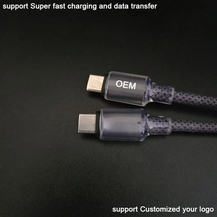 Nice Quality Transparent Ice Crystal Strong Durable Braided Dual Ended USB Type C to USB Type C Cables Name: Transparent Ice Crystal Dual Ended USB Type C to USB Type C Cables Cable length: 1m Port: Type-C Material: Nylon braided Color: black OD: 4.2mm Craft: Transparent Ice Crystal Function: Support PD super fast charging and data transfer Package size: 13.2*8*2cm Customized: support Customized your logo Tips : cable and package is separate,when you receive goods,please put it together
