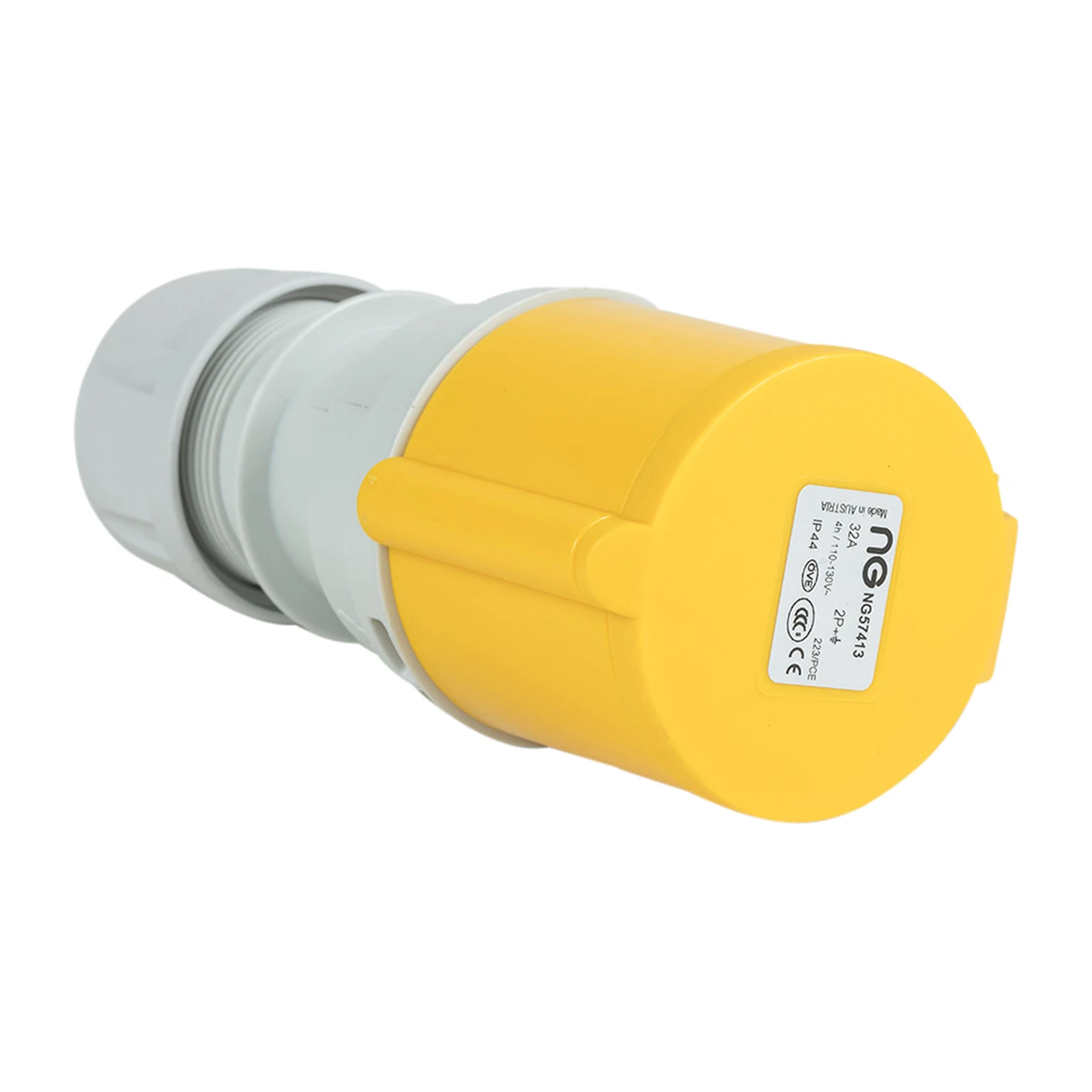 Yellow 32A 3 Pin 110V Plug · · · Easy to wire · · BS4343 – CEE17 BS EN 60309-1&2 · · Pins made of nickel-plated brass to avoid dust deposition · · IP44