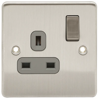 Niglon Socket 1 Gang DP Switched Grey Insert 13A Brushed Chrome
