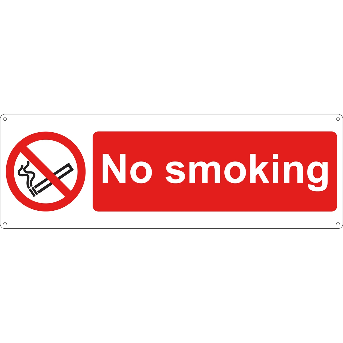 Health and safety sign with “No Smoking” written in white on a red background which indicates certain behaviour is forbidden. · · · Semi rigid sign · · White font on a red background · · Prevents fires: Smoking is a major cause of fires, so a No Smoking sign can help to prevent fires. · · Protects non-smokers: Secondhand smoke can be harmful to the health of non-smokers, so a No Smoking sign can help to protect non-smokers. · · Durable: The sign is made of materials that can withstand weather and damage. · · Complies with the law: In many jurisdictions, it is illegal to smoke in certain areas, so a No Smoking sign can help to ensure compliance with the law.