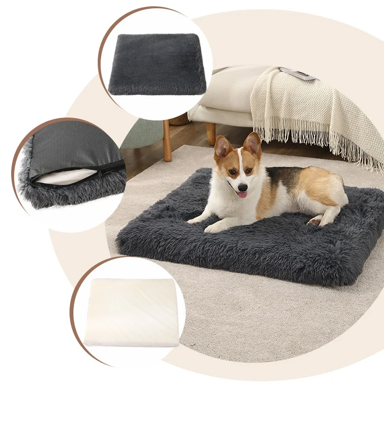 Non-slip Orthopedic Luxury Pet Bed Winter Warm Removable Washable Plush Memory Foam Pet Mat for Indoor with Removable Cover 00:08 02:10