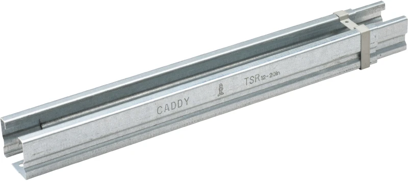 The adjustable trapeze profile reduces total installed cost by making retrofit jobs quick and simple. · · · Slotted ends allow the bracket to be installed with four nVent CADDY SN Nuts on threaded rod above an existing trapeze, saving contractor time and limiting building downtime? · · Telescopes to the desired length and is locked in place by snapping closed a spring retainer clip · · Standard strut profile runs the entire length of the part, allowing most standard fittings to be placed anywhere between the rods · · Integrated ruler displays space between hanger rods in inches and centimeters · · “Supports up to seven 2″” (50 DN) conduits, six 2″” (50 DN) water filled pipes at 10′ (3 m) spacing, or up to 18″” (450 mm) cable tray” · · Conduit can be supported on the top and bottom, eliminating the need for double sided strut · · Conduit and pipe can be placed directly on the strut profile, saving vertical space in buildings with limited room for installation