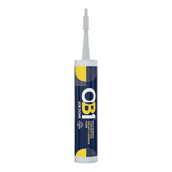 Depending on its moisture, softwoods and hardwoods expand and contract constantly, and some more than others. Aluminium expands and contracts in accordance to temperature. OB1 Construction Sealant & Adhesive will maintain its robust bond when cured from -40°C to +120°C and therefore is able to cope in harsh external weathering conditions and in a refrigerated environment. Its bond has the ability to elongate up to 350%.The original formula makes OB1 Construction Sealant & Adhesive the ideal sealant for under water applications even resistant to saltwater. Its hybrid polymer formulation can be applied under water and retains its initial bond. It also acts as a structural underwater bond in closed-face applications in swimming pools such as floor and wall tiles without the need to drain the pool.The original solvent free hybrid polymer formula used in OB1 Construction Sealant & Adhesive allows flexible adhesion that can move with the expansion and contraction of metal and steel without etching or burning the surfaces. For polypropylene and polyethylene contact manufactures technical services.Typically solar panels are installed with mechanical fixings drilled into the roof substrate. They are sealed with silicone mastics which contain a solvent base. The solvent will eventually evaporate causing the mastic to collapse hence the seal/bond line failing. OB1 Construction Sealant & Adhesive does not contain any solvents so it will never crack, shrink or collapse, creating a permanent seal/bond. In addition it has a high resistance to weathering.Gutters leak when the EPDM Seal degrades from exposure to the elements. Silicone sealants are often used to repair the seal, but the surface has to be dry first. Solvents within the sealant will evaporate causing it to shrink and collapse on the seal/bond line resulting in failure. OB1 Construction Sealant & Adhesive performs flawlessly even when applied under water, doesn’t contain solvents, so therefore will never shrink or crack. It’s the perfect repair for leaking gutters. · · · Excellent Chemical Resistance · · Resists Fungal Growth · · Weather Resistant · · Unique Flexibility · · Available in 9 colours · · Clear · · Dimensions: W:55 H:227