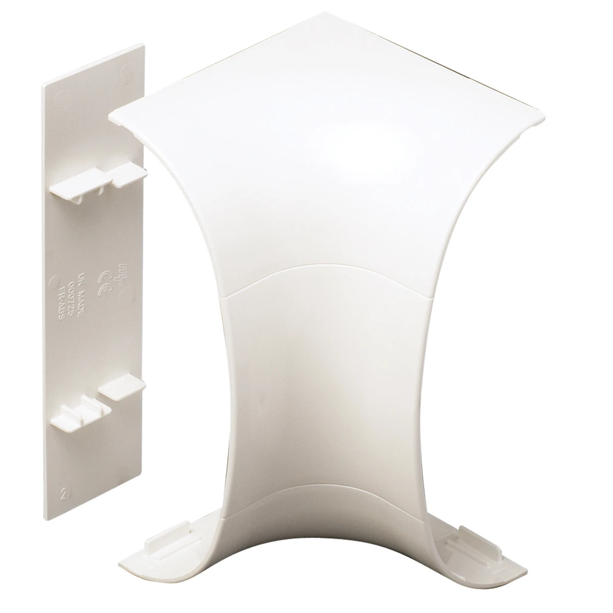 Internal bend made up of a white polyvinyl chloride (PVC) housing body, designed to accommodate a range of wiring accessories and for protecting cables and provide space for other electrical equipment. · · · Easy to install · · Durable and impact resistant · · Suitable for dado application · · Tamper resistant covers and fittings · · Self extinguishing and non-flame propagating PVC-U · · Fire clips available to secure cables within trunking and prevent premature collapse in the event of a fire · · Compliant up to Cat 7a · · Standard bend radius 25mm · · Manufactured using 62% recycled material