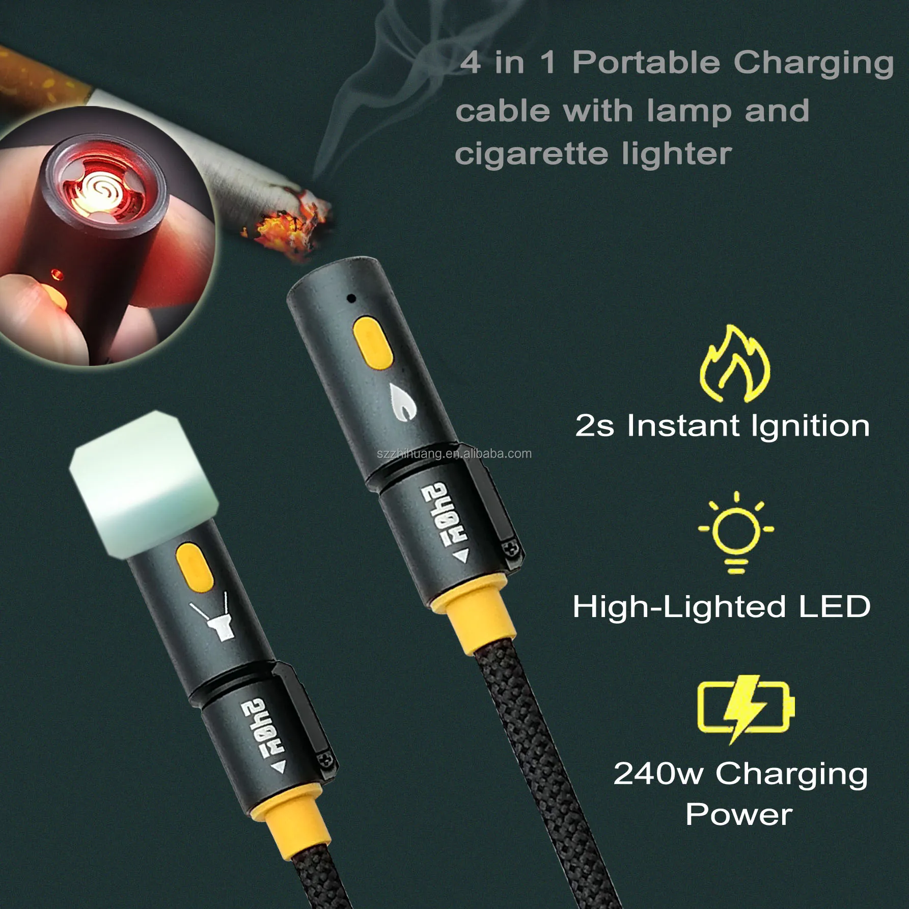 OEM/ODM Braided 4-in-1 Fast Charging Cable with Flashlight & Lighter for Earphones Mobile Phones Laptops Multiple Connectors