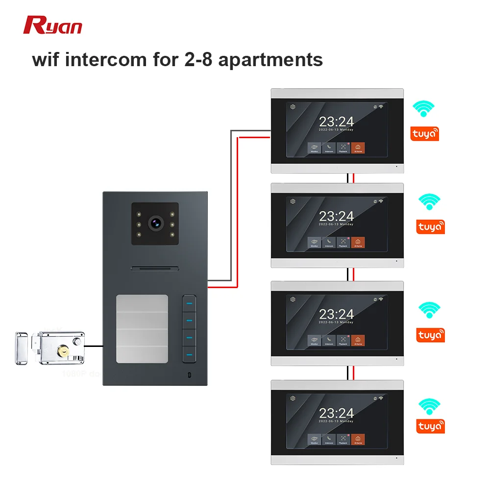 One-Button Tuya App Remote Video Door Phone Villa and Apartment Wired Outdoor Doorbell With Card Type