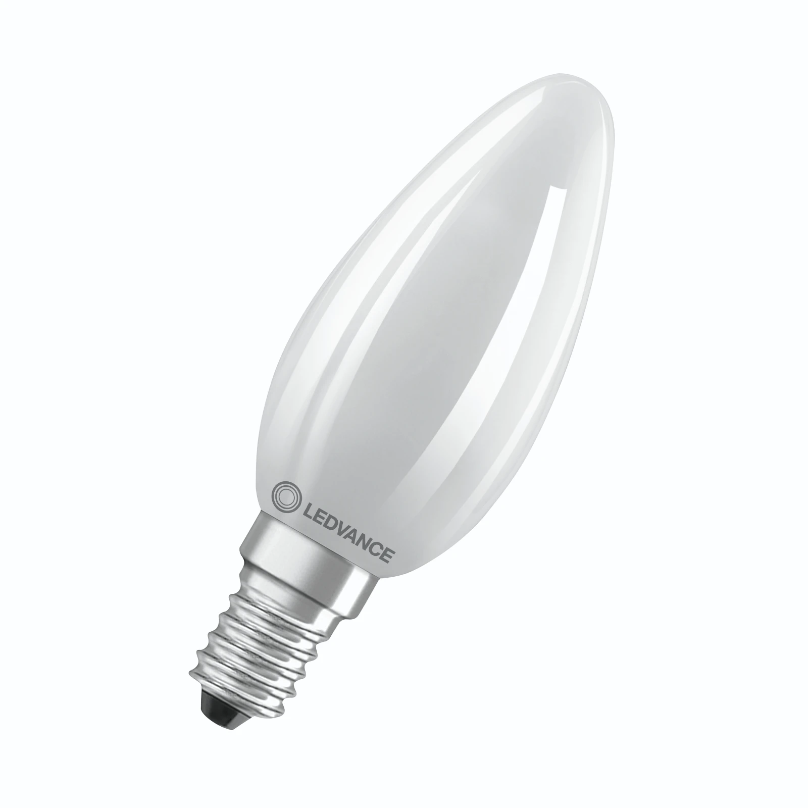The LED classic B 60 filament P 5.5W 827 2700K frosted E14 candle is a high-quality, energy-efficient LED lamp that is perfect for a variety of residential and commercial applications. It is a direct replacement for traditional 60W incandescent bulbs, and it offers a number of advantages. · · · Lamps with innovative LED “filament” technology · · Design, dimensions, luminous flux comparable to an incandescent or halogen lamp · · No UV and near-IR radiation in the light beam · · Instant 100 % light, no warm-up time · · Can be easily fitted instead of ordinary light bulbs · · Lower thermal output (compared with the standard reference product) · · Professional LED lamps for line voltage · · Beam angle: up to 300°
