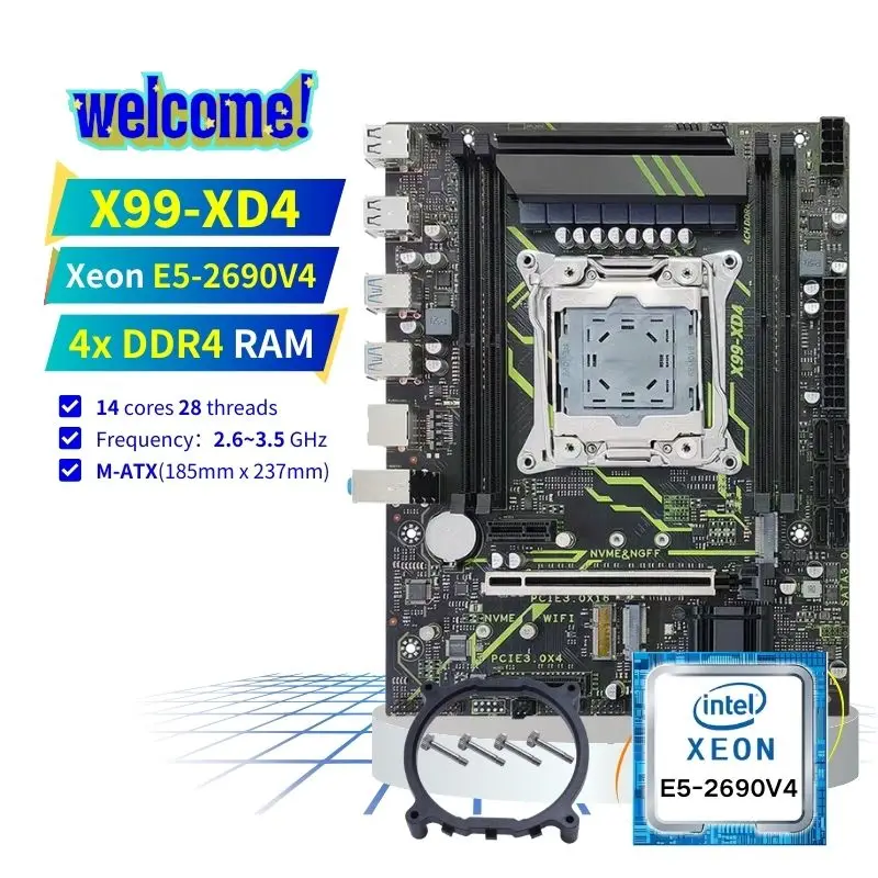 PANDL Desktop X99-XD4 PC Combination Set Matx NVMe M2 WiFi6 Sata3.0 DDR4 Ram Intel Xeon E5 2690 V4 Combo X99 Motherboard Kit