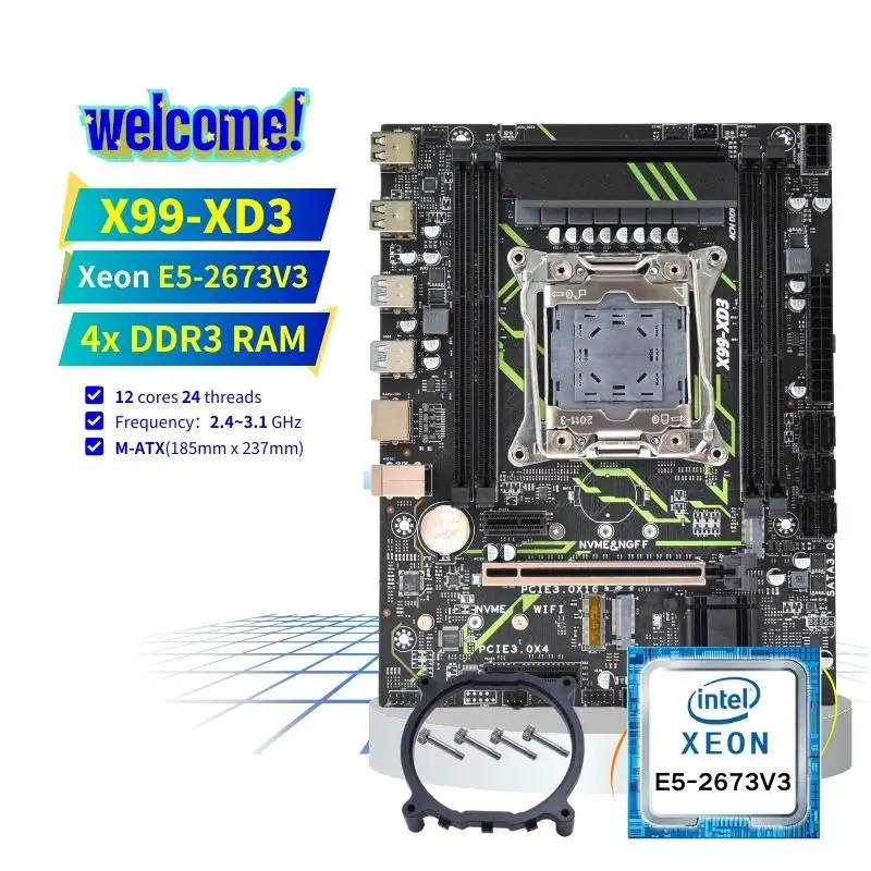 PANDL NEW M-ATX Desktop Combination Set M2 SSD WiFi6 Sata3.0 4X DDR3 Ram Intel Xeon E5 2673 V3 Combo 2673v3 X99 Motherboard Kit