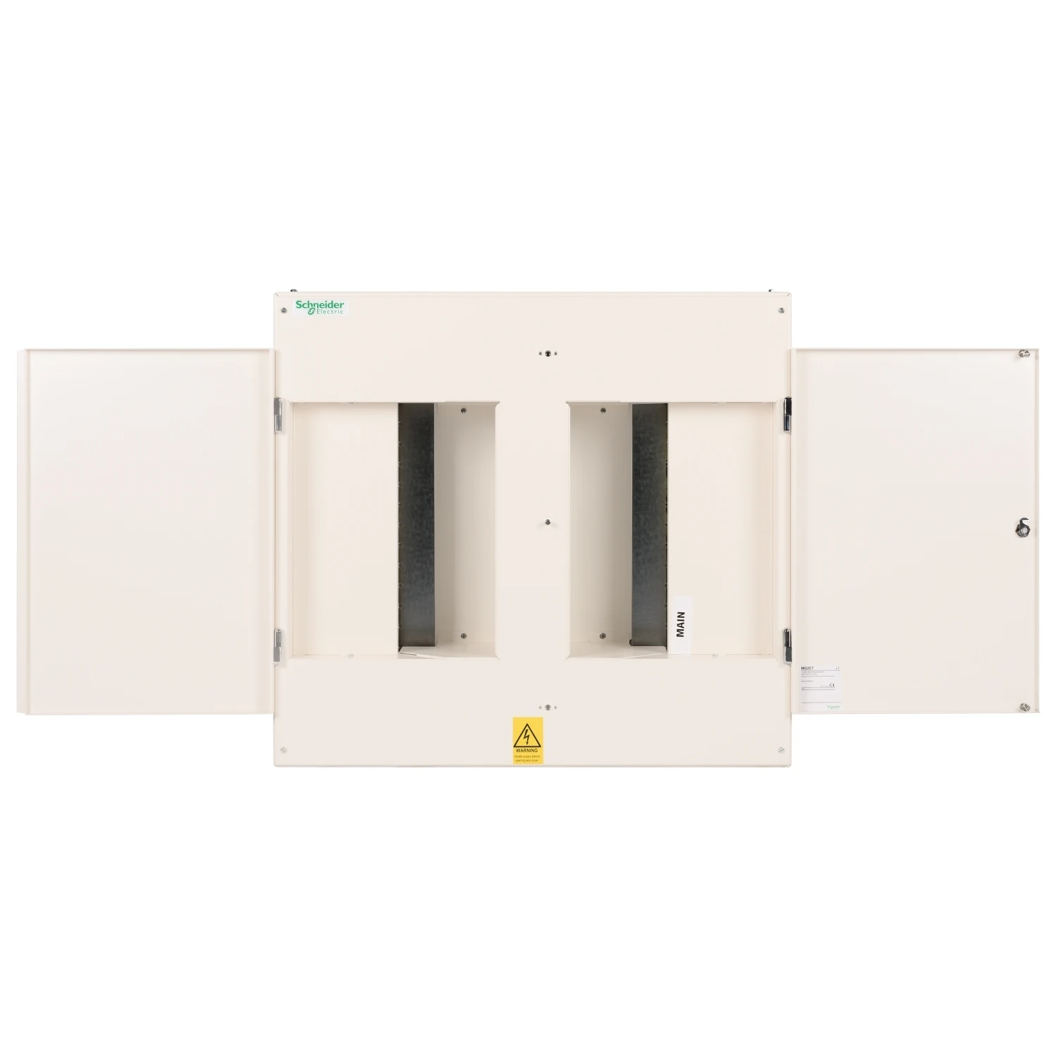 The Schneider Powerpact-4 Style-C Panel Board comes with end cover and removable bottom gland plate and is made of epoxy-polyester powder steel. This low voltage distribution board provides many unique features in the field of electrical distribution. The Powerpact 4 MCCB panel board range is ideally suited to installations where space is restricted or few outgoing circuits are required. Its suitable for industrial and commercial applications. · · · Can be added to any incoming or outgoing installation · · Rating 250A · · Protection for incoming and outgoing devices is provided by the Compact NS · · May be used as a main switchboard or sub distribution board · · Form 3b type 2 as standard · · Use of outgoing neutral or 4 pole breakers can increase the form rating to form 4b types 2 and 6 · · High current ratings: Effective · · Ready to install: Easy installation · · Robust steel work: Durable · · Uses compact breakers: Superior protection