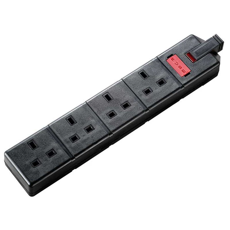Permaplug Socket Trailing Heavy Duty 4 Gang 3 Pin Fused + Neon 13A Rubber Black