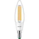 The new Ultra Efficient range of LED lamps and tubes from Signify combine industry leading efficiency of up to 210lm/w with a long 50,000 hour lifetime for a more sustainable lighting solution.- A Energy Rating- 210 lumens per watt- 2.3w replaces 40w candle- 4000K Cool White- Attractive clear glass envelope- 50,000 hour lifetime- E14 cap- 50,000 switching cycles