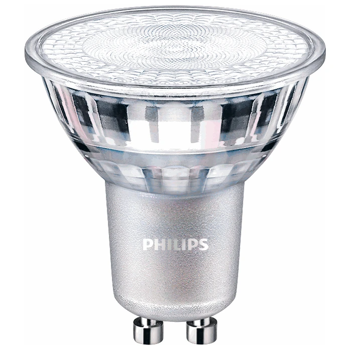 Philips Master Value LED GU10 Lamp 3.7w (35w Equiv) 927 DimTone · · · Dimtone technology, the colour gets warmer as you dim · · CRI 90 · · 2200-2700K Colour Temperature · · 270 Lumens · · 73 l/w · · 35w Halogen Equivalent