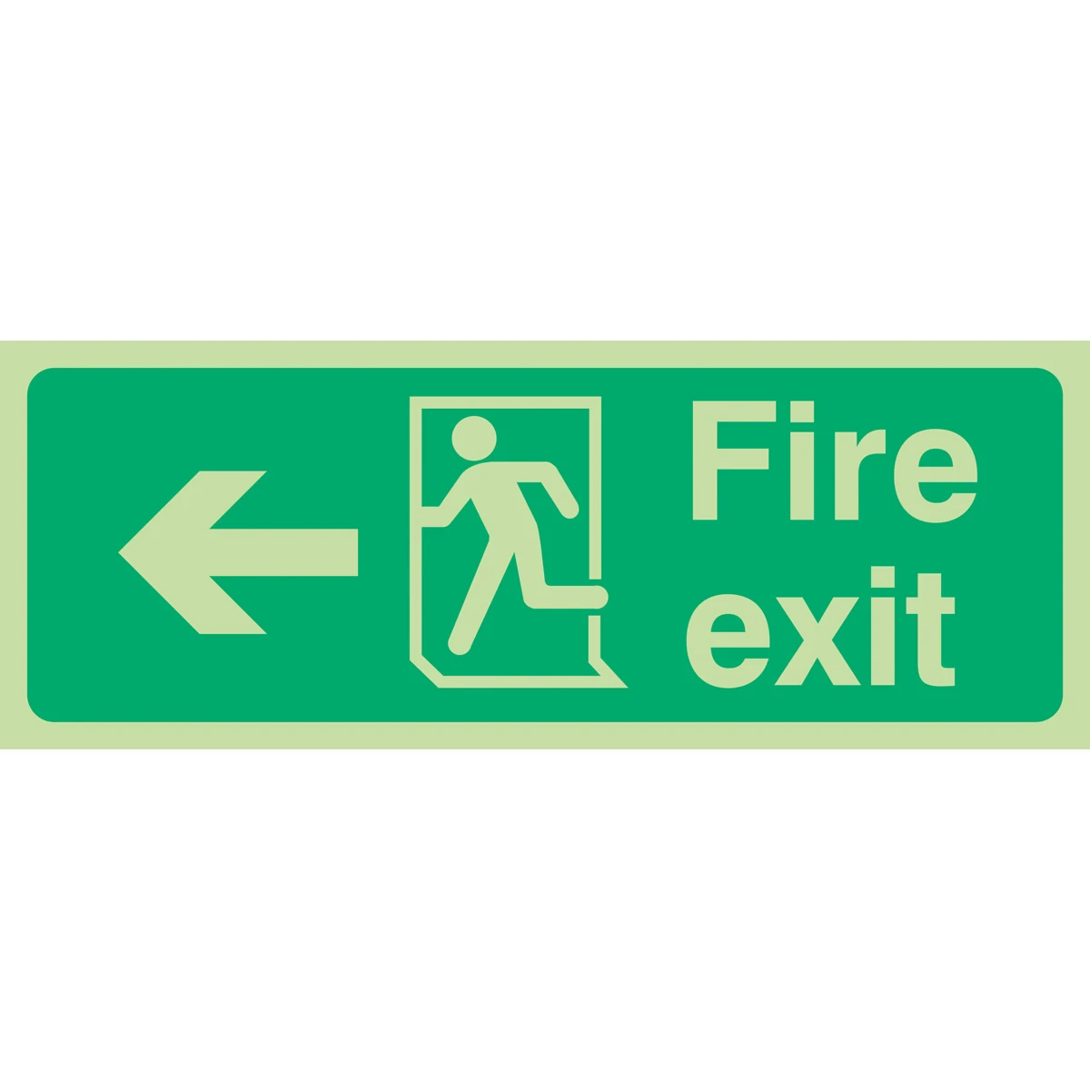 Photo Luminescent Sign "Fire Exit" Left Arrow 400x150mm Green