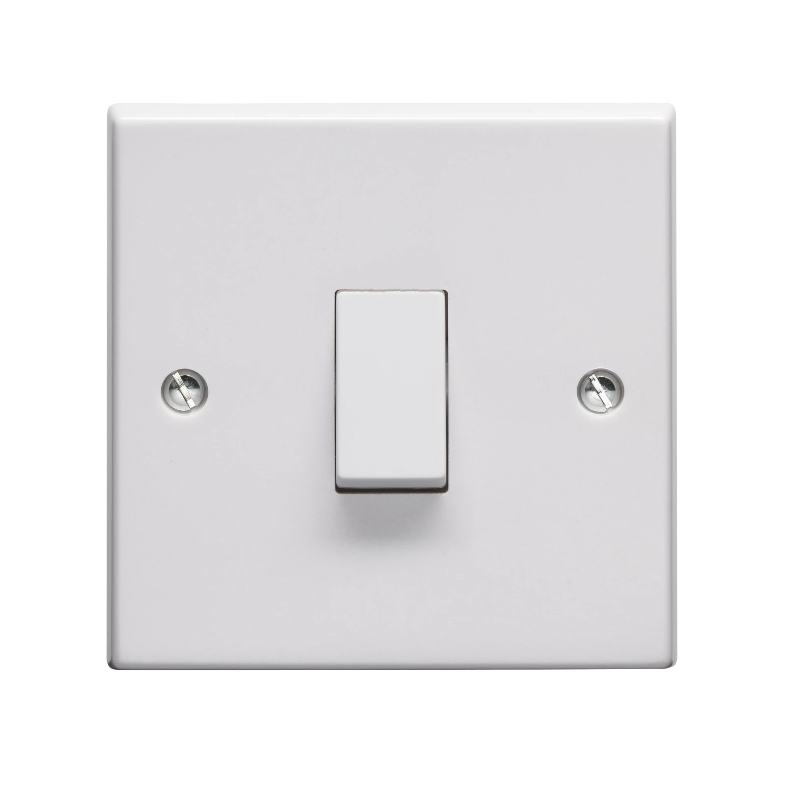 Technical Specifications Technical Specifications Switch Colour White Minimum depth of back box 16 mm Height of device 86 mm Number of rockers/gangs 1 Rated current 10 A Number of module spaces (modular system) 0 Width of device 86 mm Nominal voltage 250 V Switching current for fluorescent lamps 10 AX Feedback-signal contact No Washing machine switch No Push button switch Yes With mounting plate Yes Halogen free Yes · Technical Data Sheet – Click to Download · Technical Data Sheet – Click to Download