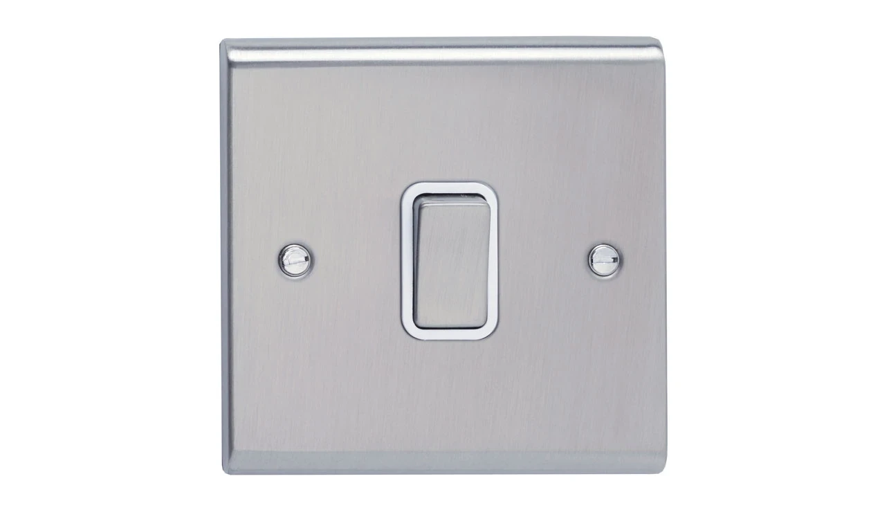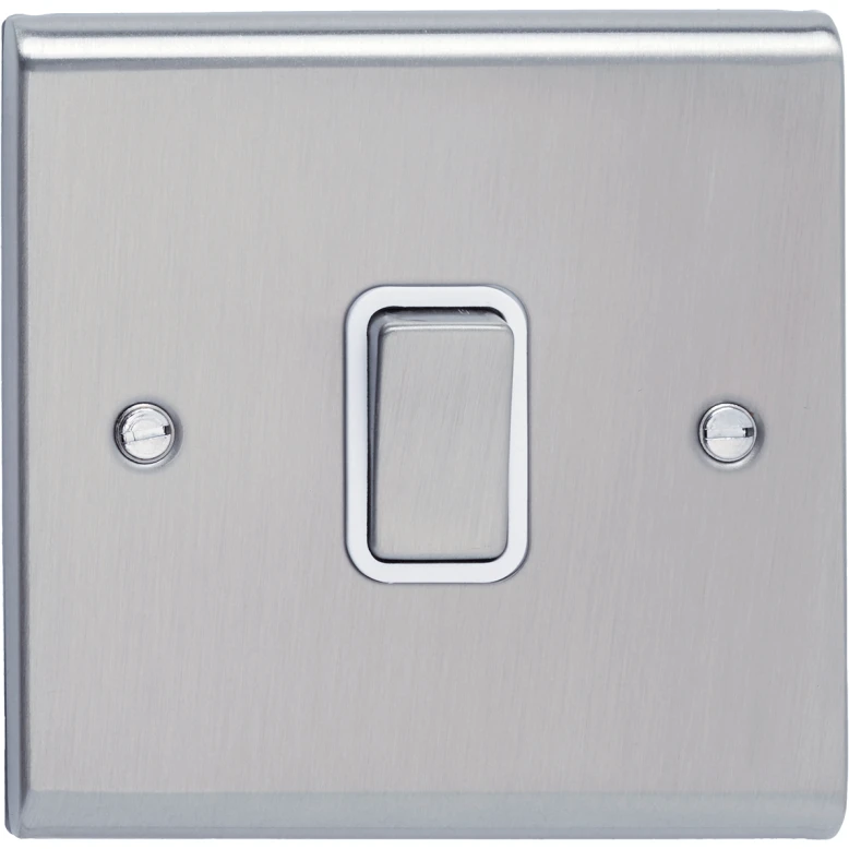 Plate Switch 1 Gang 2 Way White Insert 10A Stainless Steel
