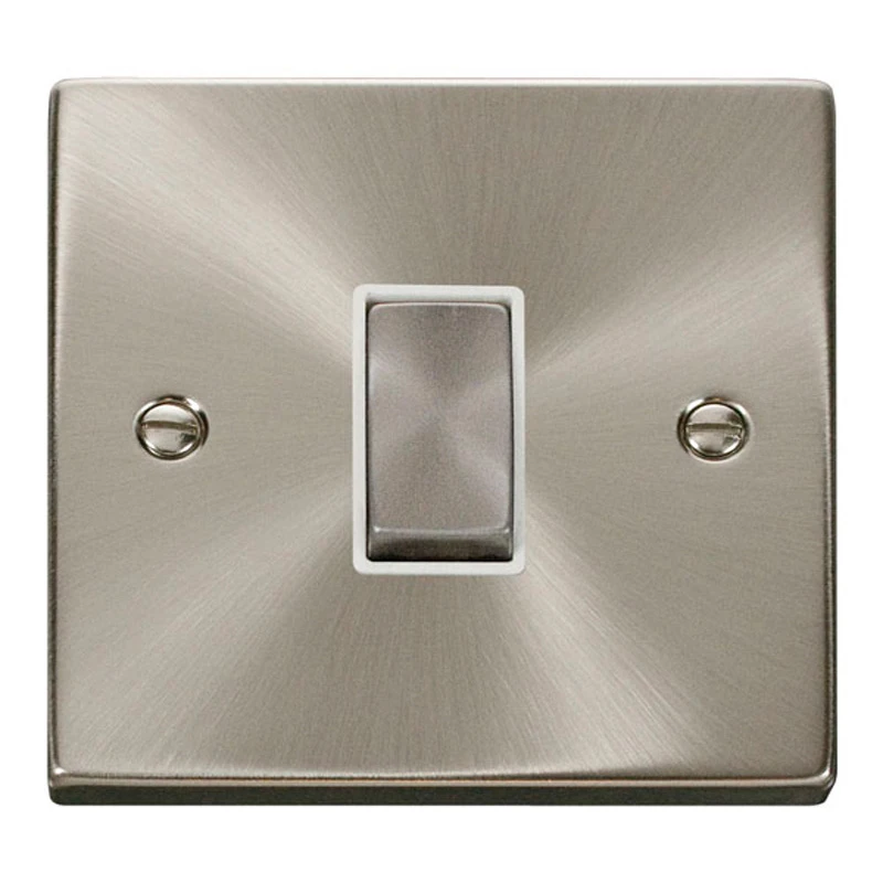 Plate Switch 1 Gang 2 Way White Insert Victorian 10A Satin Chrome