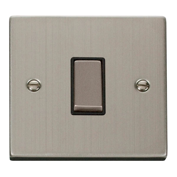 Plate Switch 1 Gang Intermediate 10A Stainless Steel Black Insert Victorian