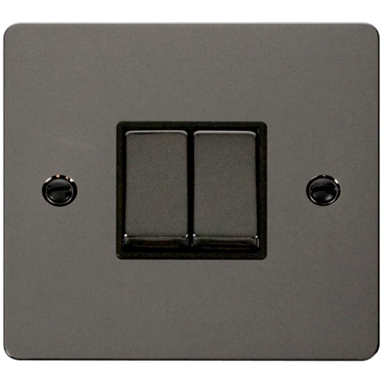 Plate Switch 2 Gang 2 Way 10A Black Nickel Black Insert