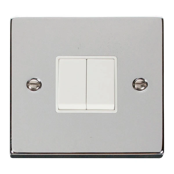 Plate Switch 2 Gang 2 Way 10A Polished Chrome White Insert Victorian