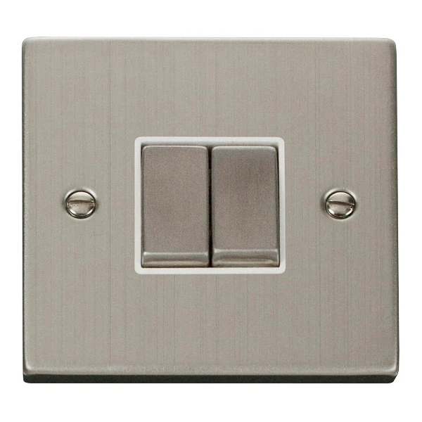 Plate Switch 2 Gang 2 Way 10A Stainless Steel White Insert Victorian