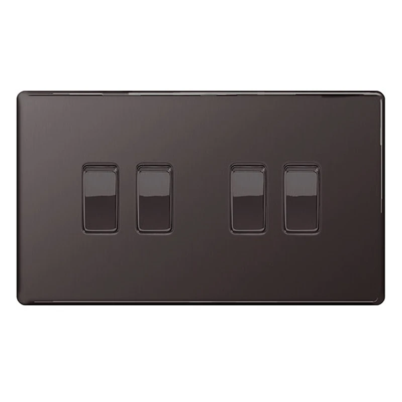 Plate Switch 4 Gang 2 Way 10AX Black Nickel