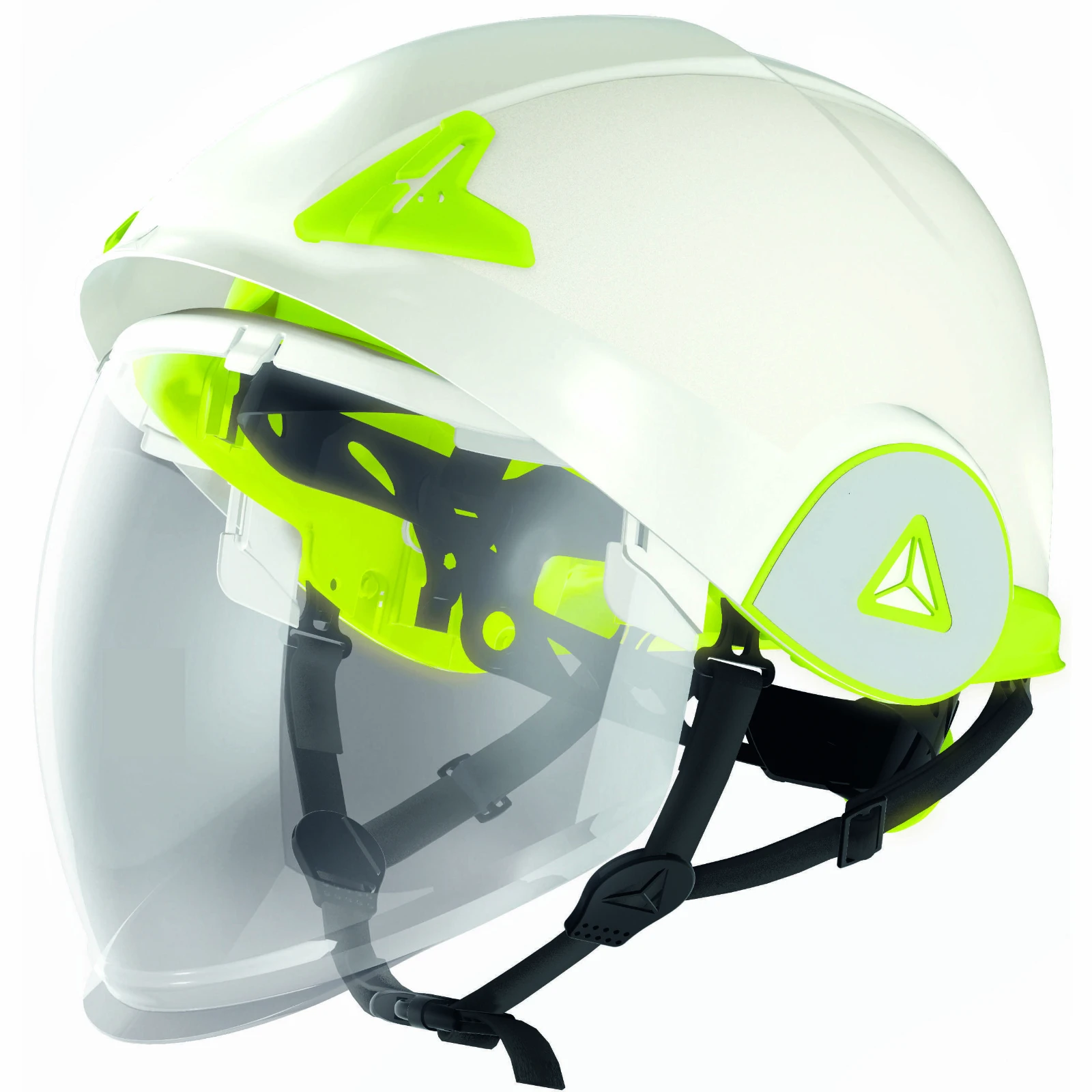 Delta Plus Arc Flash Helmet With Retractable Visor · · · Arc Flash · · Dual-Shell · · Retractable Visor · · One-D Rotor ergonomic clamping system · · Anti-scratch (K) · · Anti-mist (N) · · UV400 · · Well Balanced